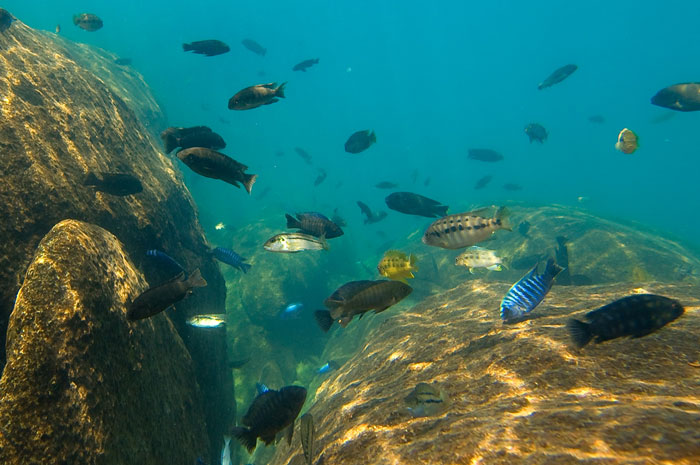 Kamnite obale jezera Malawi predstavljajo skoraj 90% naravnega okolja, to kamnito puščavo so si za svoj dom izbrali številni pisani ostrižniki, ki jih lahko brez težav gojimo tudi v akvariju. Vir fotografije: Jambo International Tour, Lake Malawi: Snorkeling Paradise of East Africa, https://jambointernationaltour.com/wp-content/uploads/2025/06/image-104.png (8. 3. 2026)